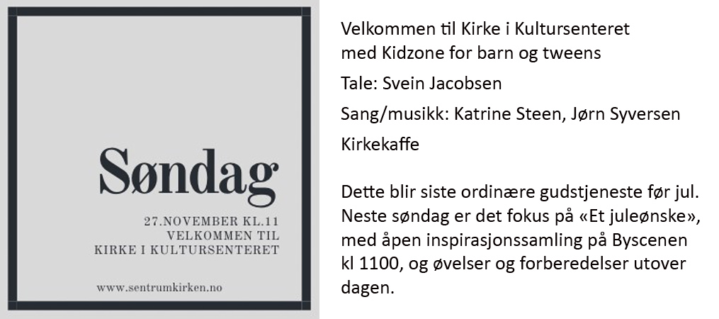 Sentrumkirken – søndag 27.11 kl 1100