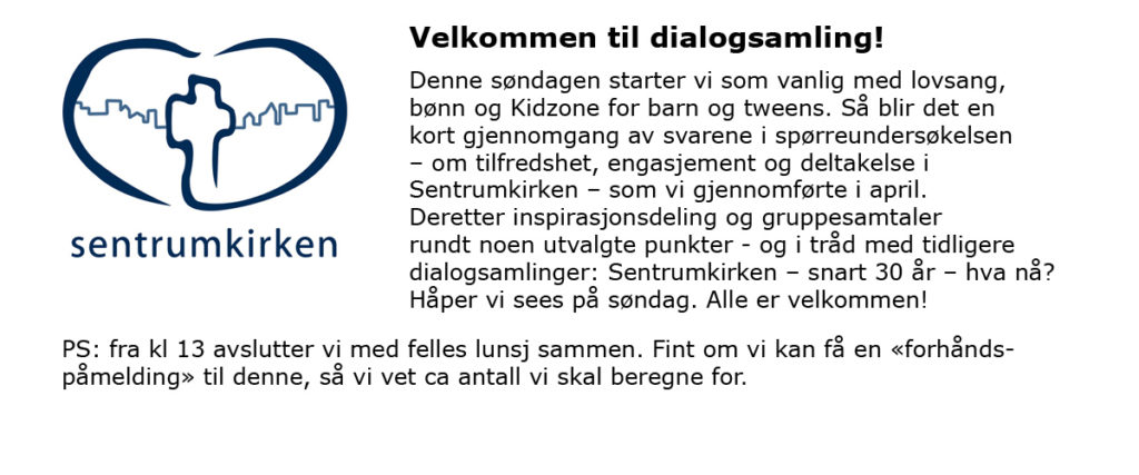 Søndag 18.05 – velkommen til dialogsamling!